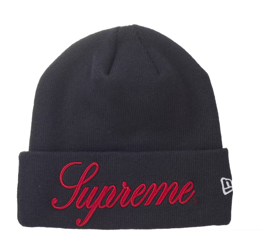 Supreme x New Era Script Beanie “Navy/Red”