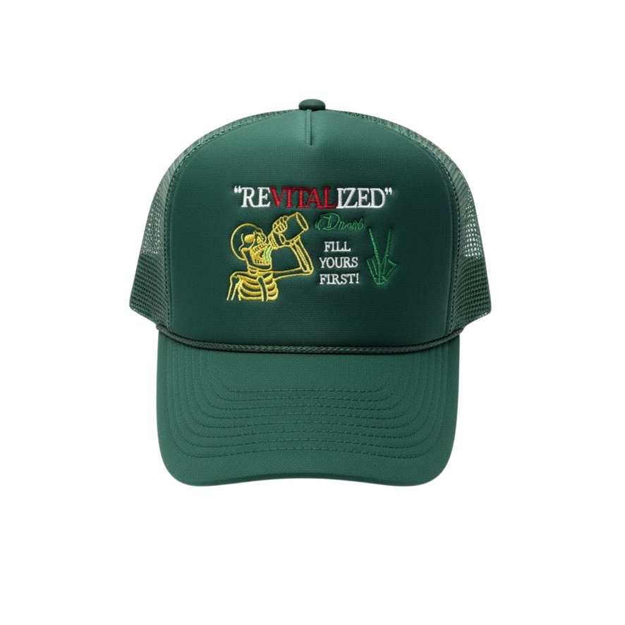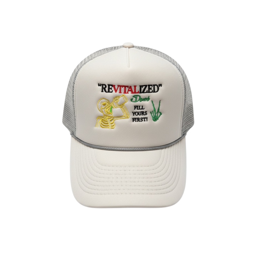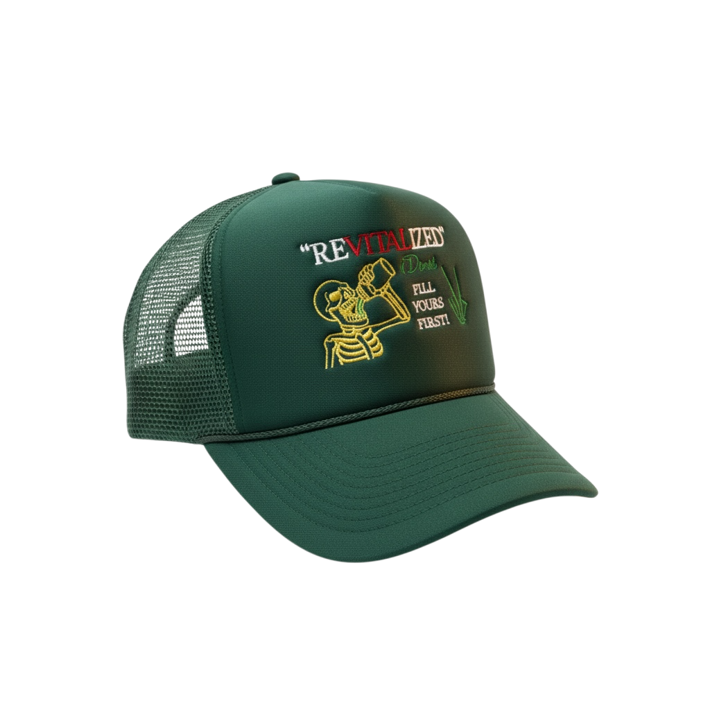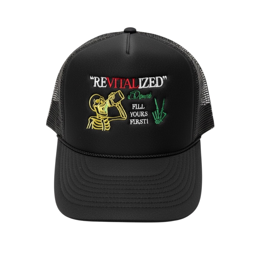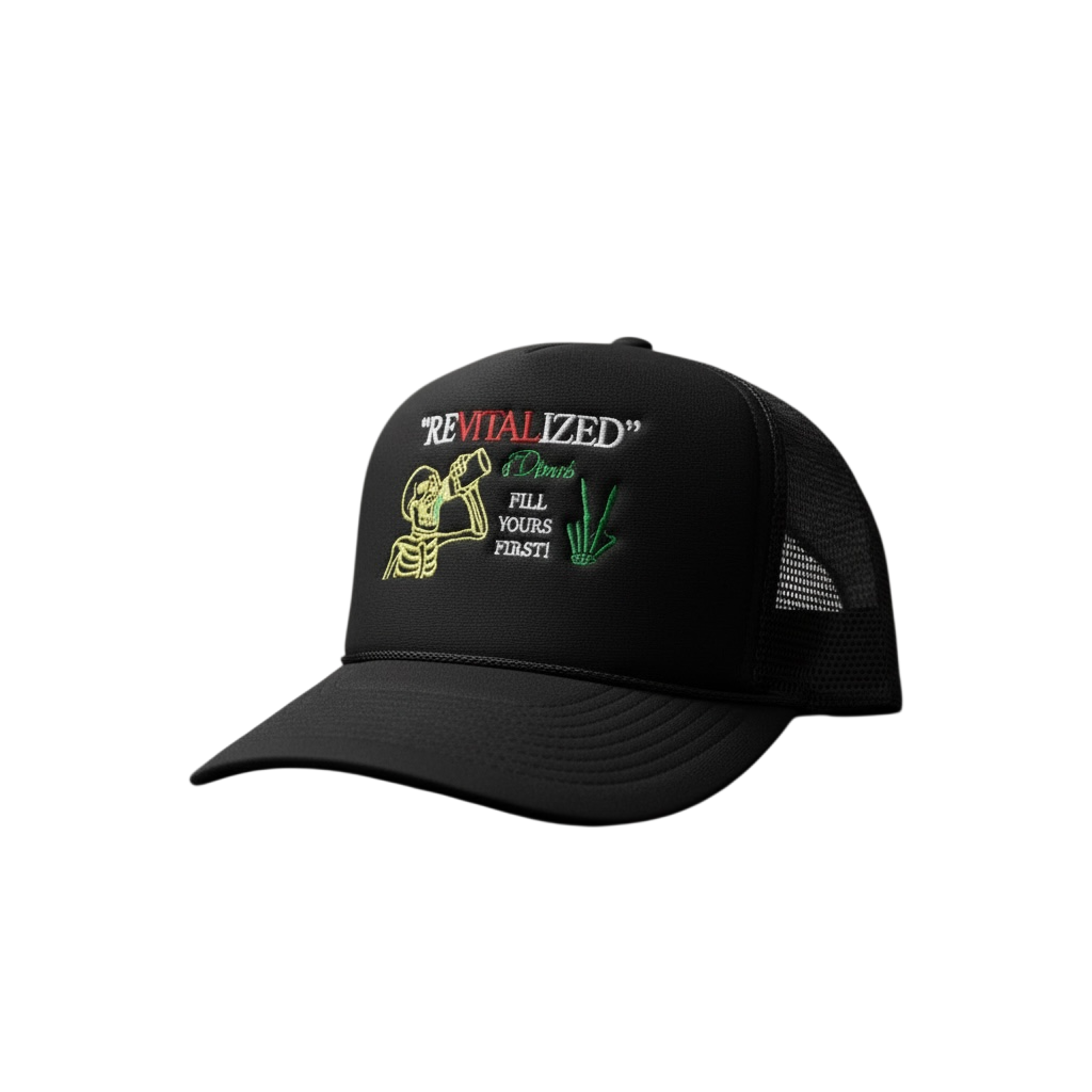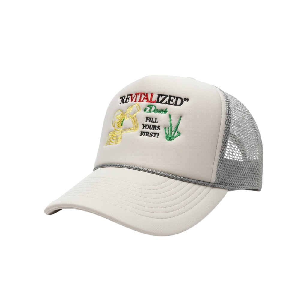 The Vital Chinatown x Devore “Fill Yours First” Trucker Hat is a statement of responsibility—to self, and in turn, to community.
